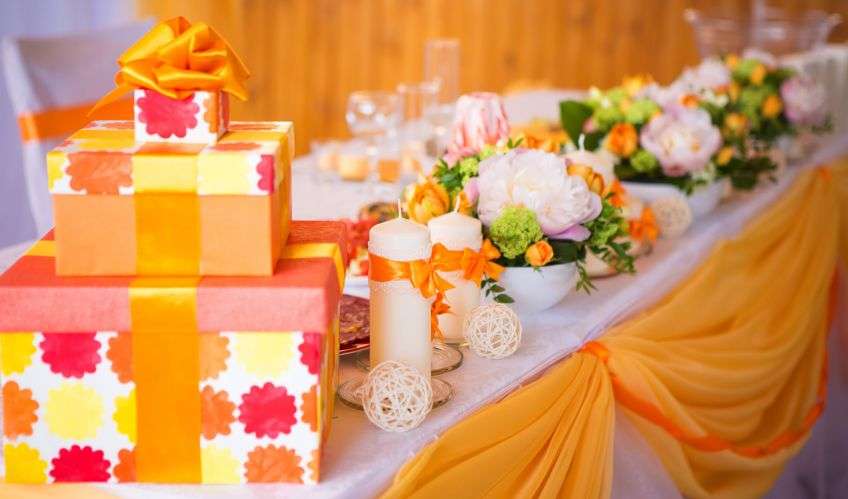 Даже если вы преподнесете в качестве презента букет цветов или обычную открытку, в сердцах пары все равно останется благодарность за внимание. Самое главное, чтобы в подарках присутствовали янтарные оттенки