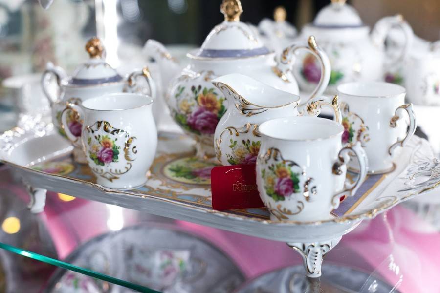 - чайные, кофейные или обеденные сервизы из фарфора на 6 персон;