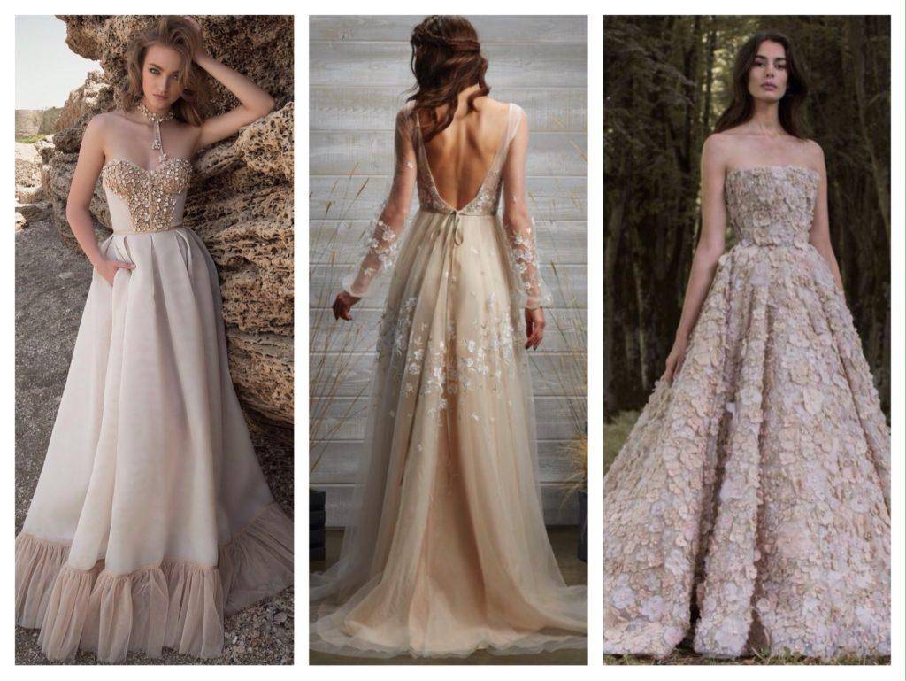 Здесь вы увидите еще несколько вариантов бежевого свадебного платья: