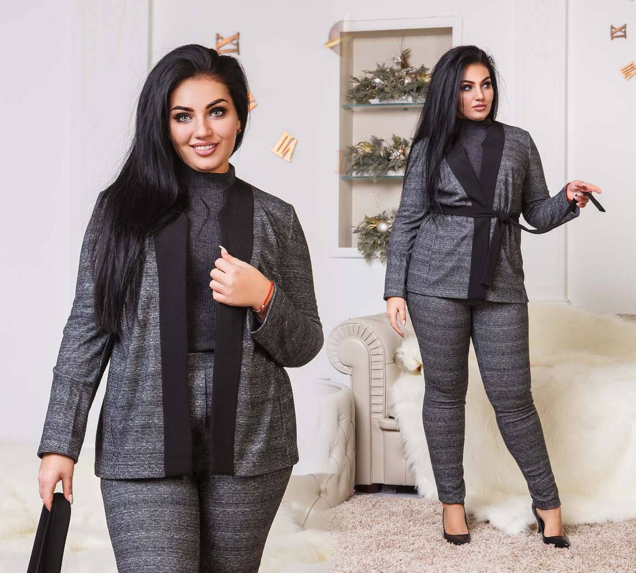 Трикотажное плетение прекрасно подходит для пошива комплекта с брюками. Трикотаж очень практичен, не нуждается в особом уходе, почти не мнется