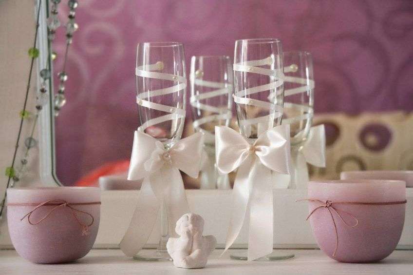 Как вариант, можно на свой вкус отдекорировать свадебные бокалы и преподнести их молодым именно в день их венчания. Одним словом, потенциал для творчества в вопросе о том, какой подарок, сделанный собственными руками, будет приятен молодой паре – просто огромен.