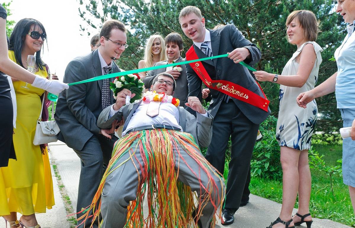 - Помогает провести выкуп невесты. Свидетель, приглашенный на русскую свадьбу, обязательно должен помочь жениху принять участие в традиционном русском обычае – выкупе невесты. Свидетель заранее узнает, как проходит выкуп невесты, закупает продукты, которые потребуются для этого мероприятия, такие как конфеты, шампанское, соки, а также запасается мелкими купюрами, чтобы оплачивать «штрафы» за неправильные ответы жениха. Свидетель также активно помогает жениху участвовать в конкурсах и прорываться к невесте.