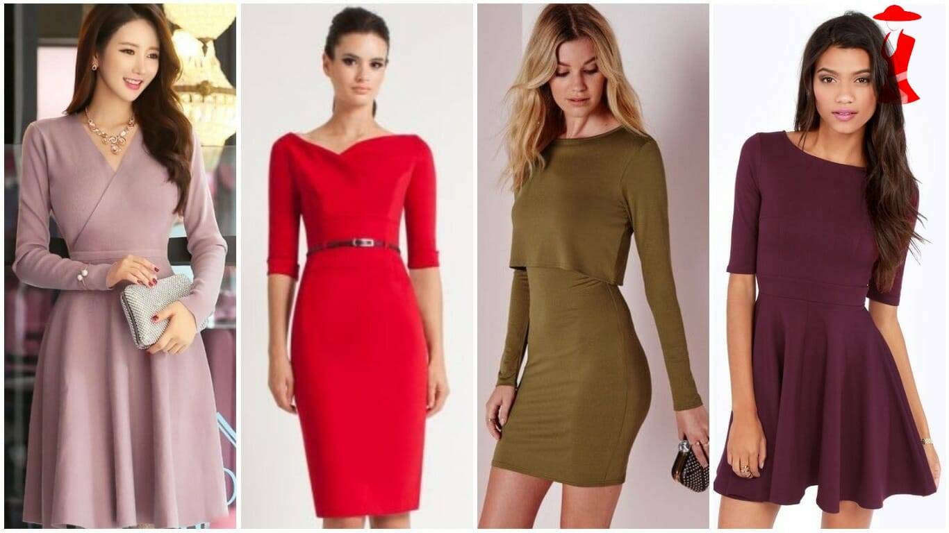 Стройные ноги поможет подчеркнуть платье длиной до колена, с рукавами или прикрытыми плечами. Платья-бандо не рассматривайте, они визуально еще больше расширят плечи.