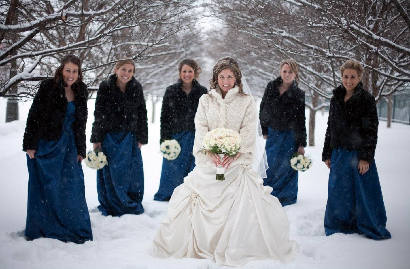 На зимней свадьбе тоже хочется быть нарядными, вот только не самые благоприятные погодные условия существенно ограничивают в выборе нарядной одежды. Ведь хочется быть не только красивыми, но и не мёрзнуть. В данном случае нужно просто выбирать одежду, которая будет тёплой и стильной, и забыть о коротких воздушных платьях.