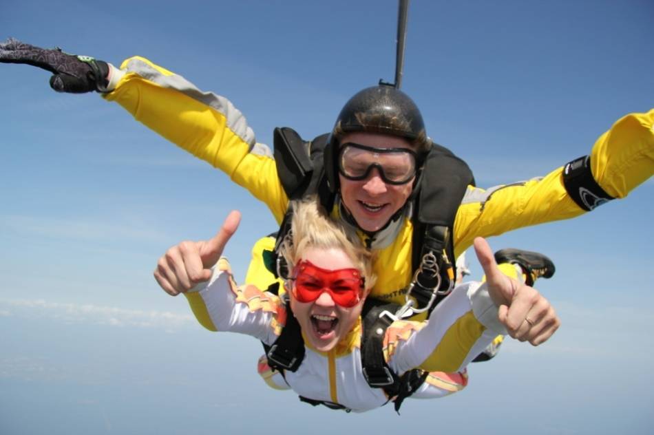 На медную свадьбу еще молодым и очень энергичным супругам можно подарить совместный прыжок с парашютом.