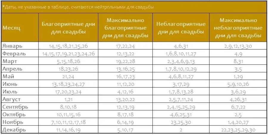Лунный календарь свадеб на 2021-2022 год — благоприятные дни: таблица