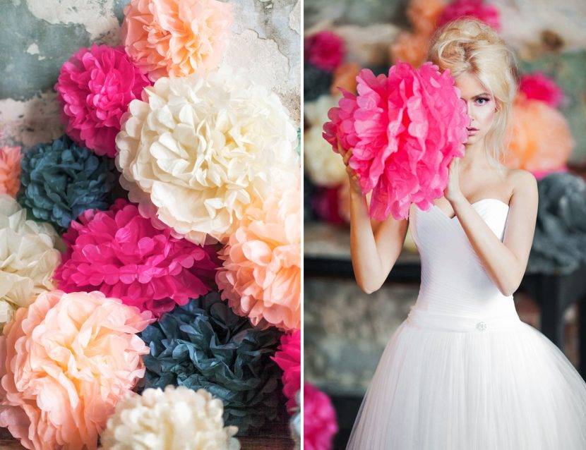 Классический вариант – цветочная композиция в виде арки, сердца или просто ковра из зелени и бутонов. Необязательно использовать свежие цветы, искусственные будут смотреться не хуже, при этом точно не начнут вянуть в течение дня. Тем более нежные лепестки из ткани, бумаги, фетра или полимерной глины вполне можно сделать и самостоятельно, вложив в торжество частичку своей души. Все необходимые материалы можно купить в любом магазине творчества.