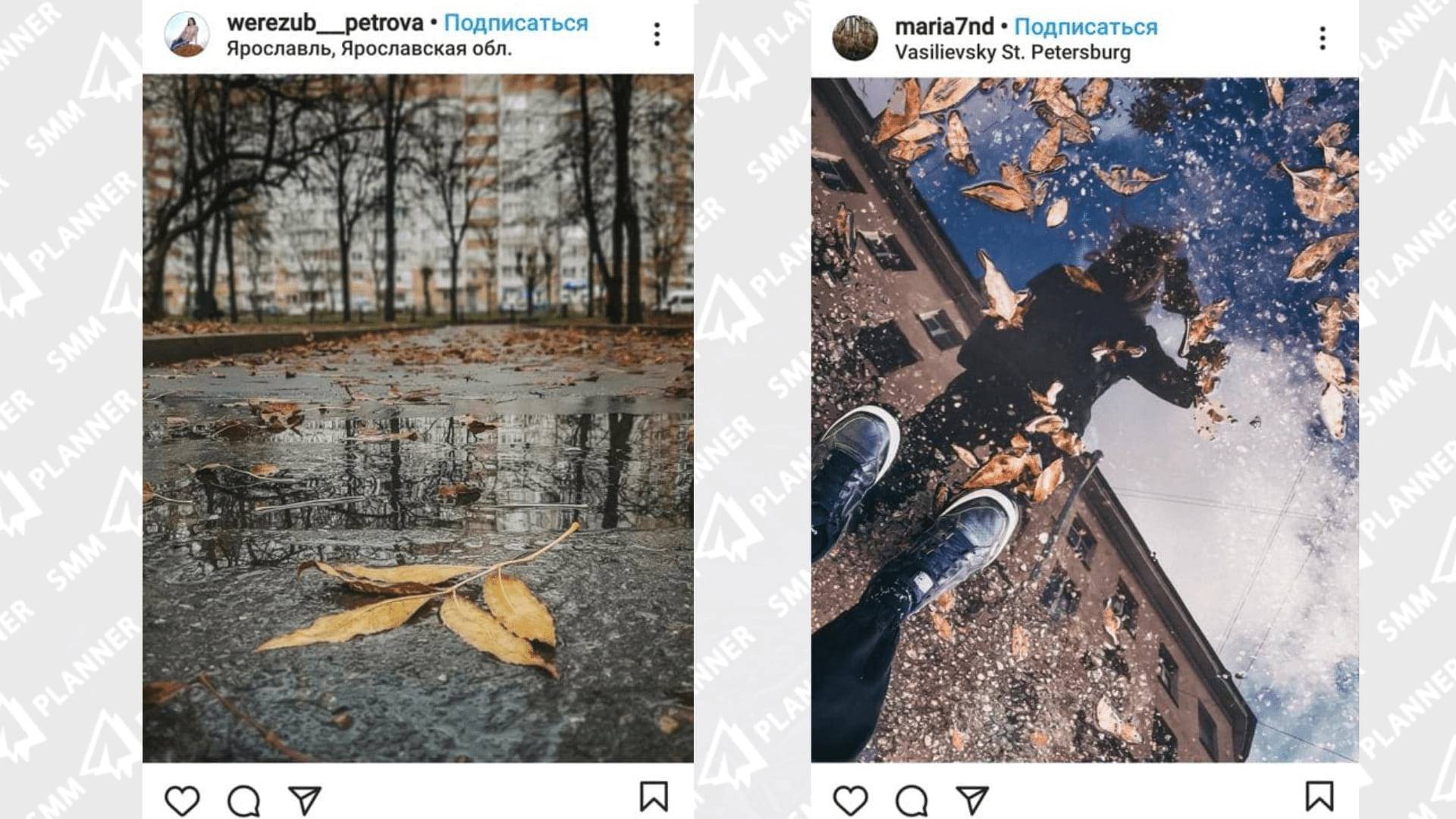 Осень и начало зимы почти всегда сопровождаются дождливой погодой. Но сами лужи редко оказываются центральной мыслью кадра. А ведь в них можно весело прыгать, стоять рядом и заглядывать.