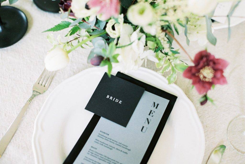 - Пригласительные – при изготовлении открыток или конвертов не нужно экспериментировать. Достаточно цветовой игры (черный с бежевым или со светло-розовым), красивого шрифта и такую карточку никто не упустит из виду. Такие правила действуют и на карточки для распределения гостей и при создании карты праздничного банкета.