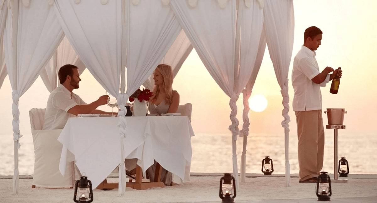 - ужины при свечах по индивидуально составленному меню из 5 блюд, которые подаются в уединенной части пляжа;