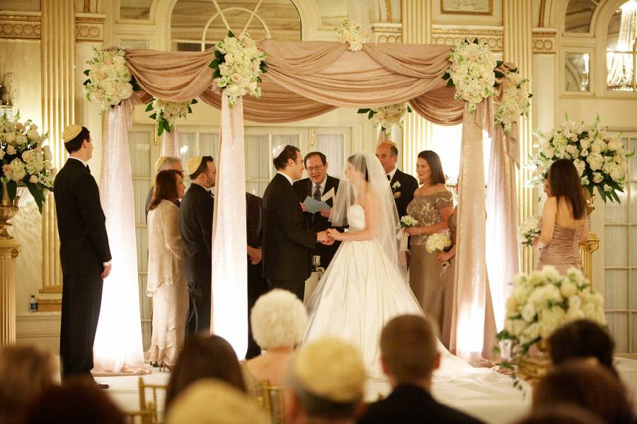 Это главная часть бракосочетания, а также название балдахина, под которым происходит обряд венчания. Балдахин покрыт тканью только сверху, подобно шатру гостеприимного Авраама, а также в знак того, что молодые готовы встретиться с ветрами и ненастьями с любой стороны.