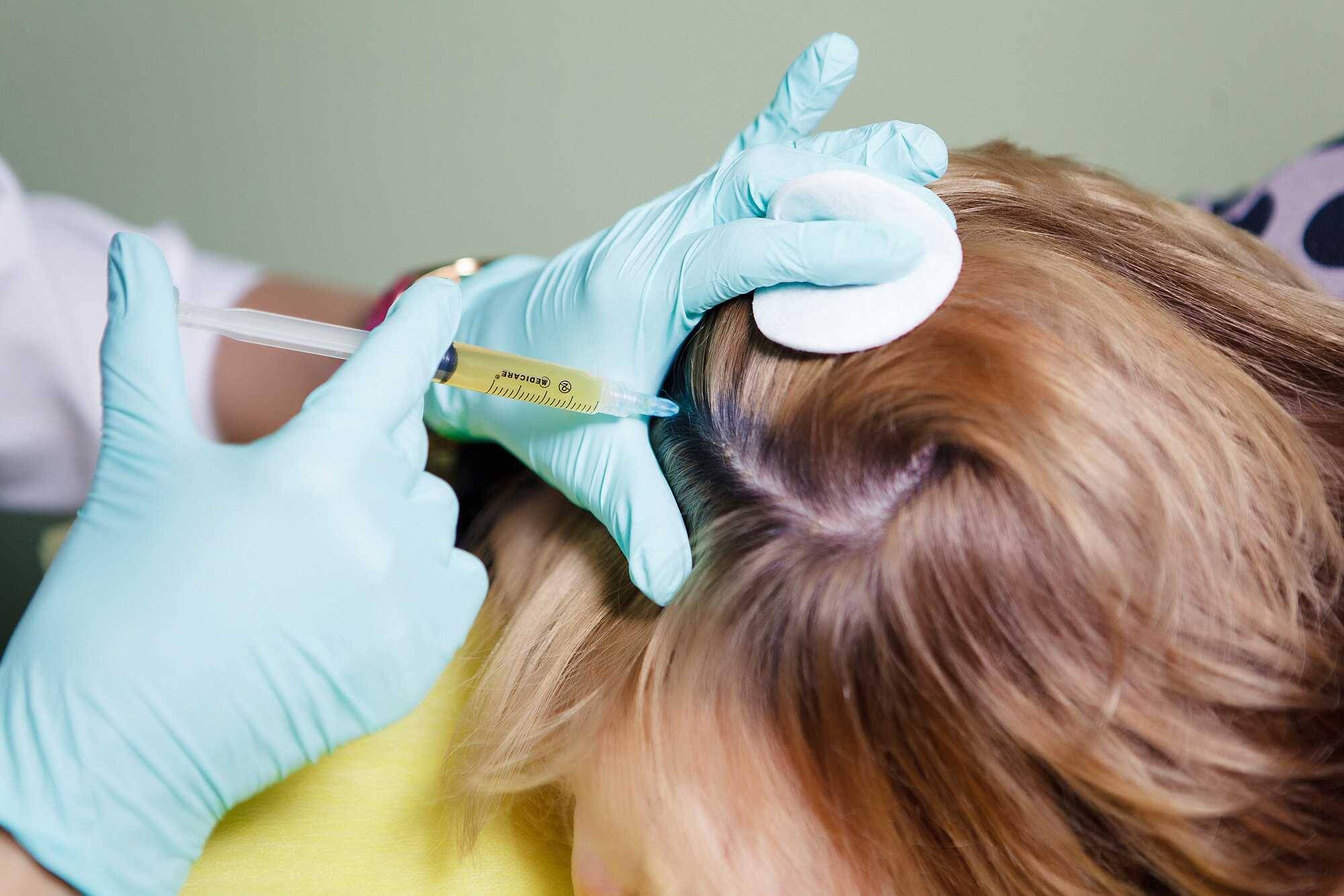 Другое название процедуры – плазмолифтинг. Суть – в стимуляции скрытых резервов тканей кожи головы путем введения плазмы собственной крови пациента.