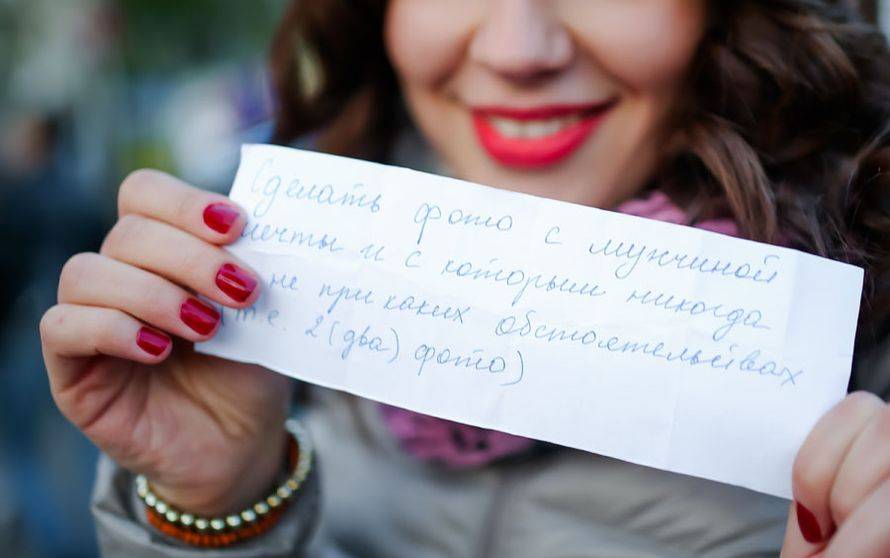 Набирающий популярность квест подойдет активным невестам, обожающим сюрпризы. Задача барышни – найти место проведения девичника. Подруги заранее раскладывают по городу или четко оговоренной территории подсказки, загадки.