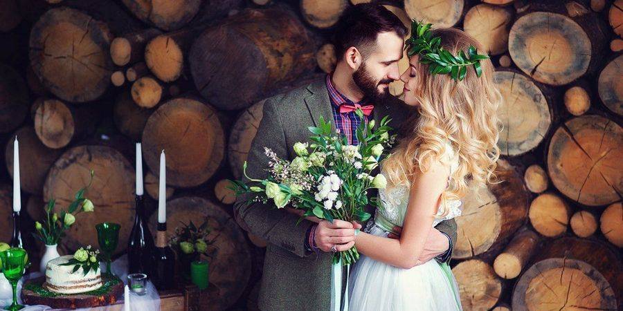 Основная задача – использование природных материалов при создании фотозоны. Например, древесные спилы станут своеобразными подсвечниками, украшения нарядов молодоженов и даже прически девушки будут основаны на ягодах, веточках, перьях и других дарах природы.