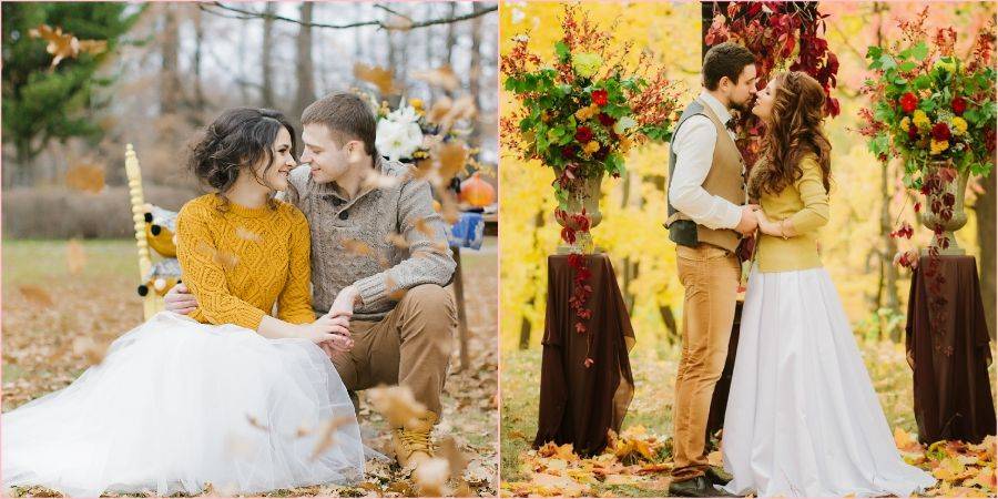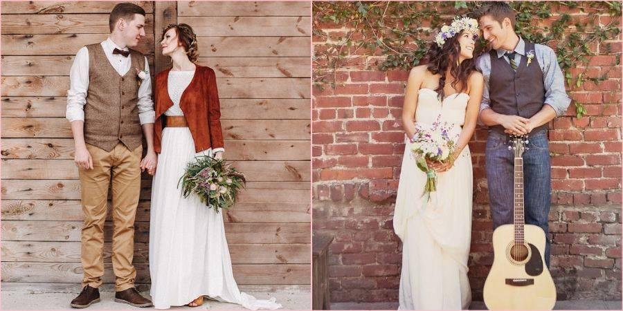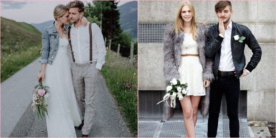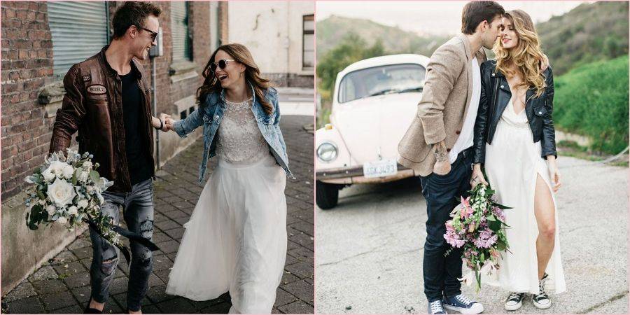 Простые повседневные, а главное, удобные вещички отлично впишутся в лук молодоженов 2021 года. Это могут быть любимые джинсовки или кожанки, современные кардиганы, модные кеды, интересные шляпы, в общем, все то, что люди носят в обычной жизни. С помощью них Вы, несомненно, подчеркнете индивидуальность своей пары и сделаете уникальные фотокарточки.