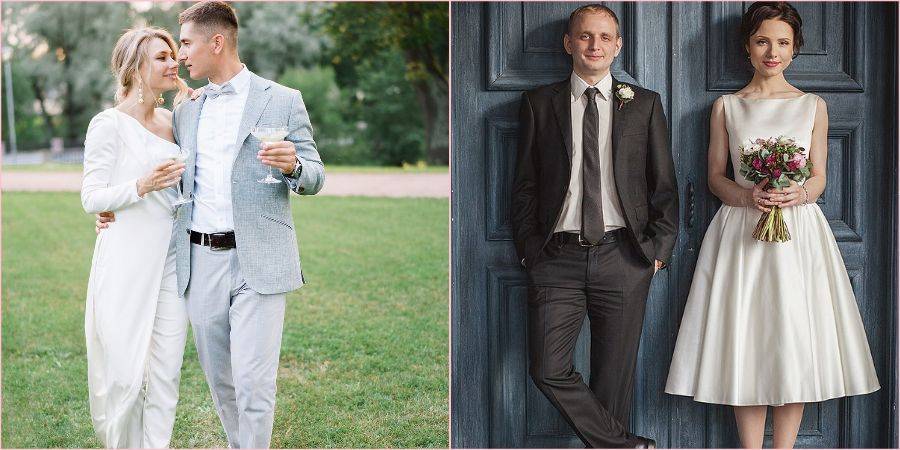 Тщательная подготовка образов актуальна в случае, если молодые пожелают провести фотосессию после регистрации. Невеста не ограничена в выборе коктейльных платьев, а жених может ограничиться джинсами с кофтой или футболкой, либо брюками с костюмом – тройкой. Для поклонниц свободы действий можно оставить привычный и удобный стиль городского кэжуал. В вопросах аксессуаров и подбора прически также нет ограничений, все подбирается на усмотрение самих молодоженов. Если планируется празднование, можно прийти при параде. Если нет – то будет уместным обычный повседневный образ.
