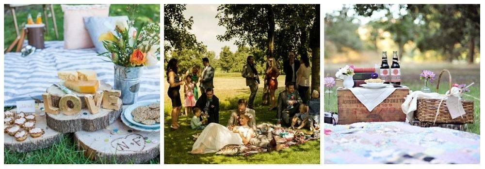 В теплую погоду можно отправиться на природу и устроить свадьбу-пикник или барбекю. Покрывала, подушки и пеньки вместо банкетных столов, свежие закуски и сочный шашлык вместо стандартного ресторанного меню — такое необычное торжество оставит море положительных впечатлений. А традиционные конкурсы под руководством тамады можно заменить подвижными играми на свежем воздухе и, если рядом есть водоем, даже купанием! Еще один плюс такой свадьбы — экономичность, особенно если проводить ее в парке, за городом или на собственной даче. Если же планируется много гостей, можно арендовать на день коттедж с большим участком, украсить его и пригласить музыкантов.