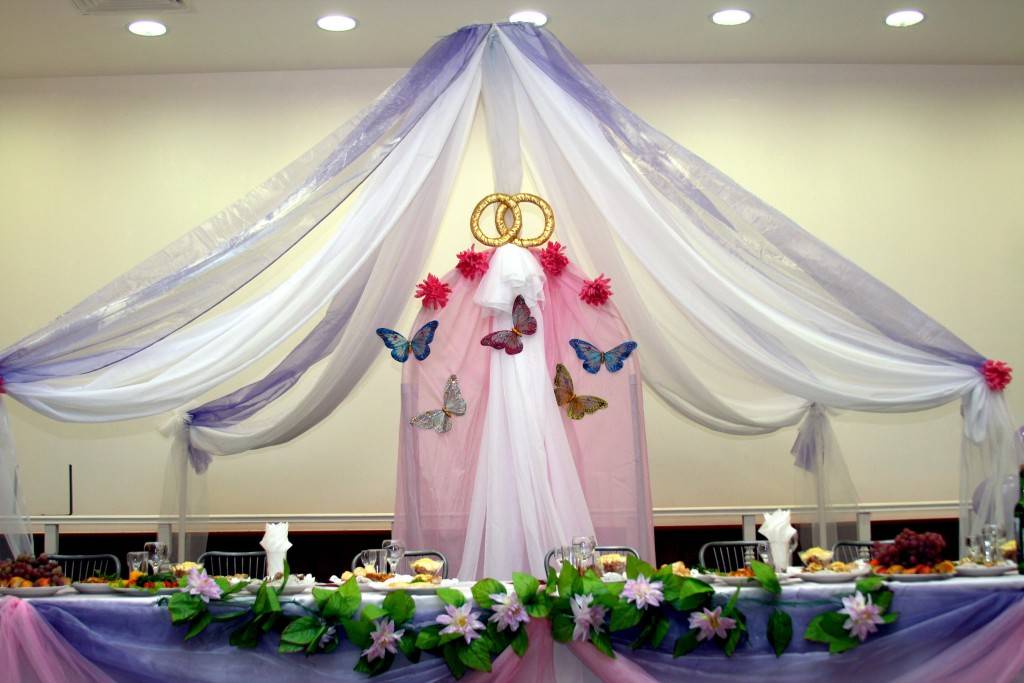 Оформляя таким образом зону молодых, нужно придерживаться цветового и стилевого единства, гармоничности.