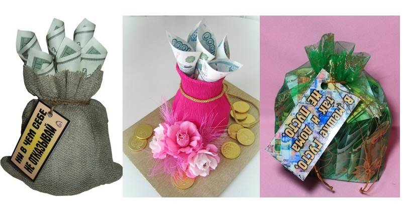 Преподнести подарок с деньгами можно и в другом виде, например, в мешочке, сшитым своими руками.