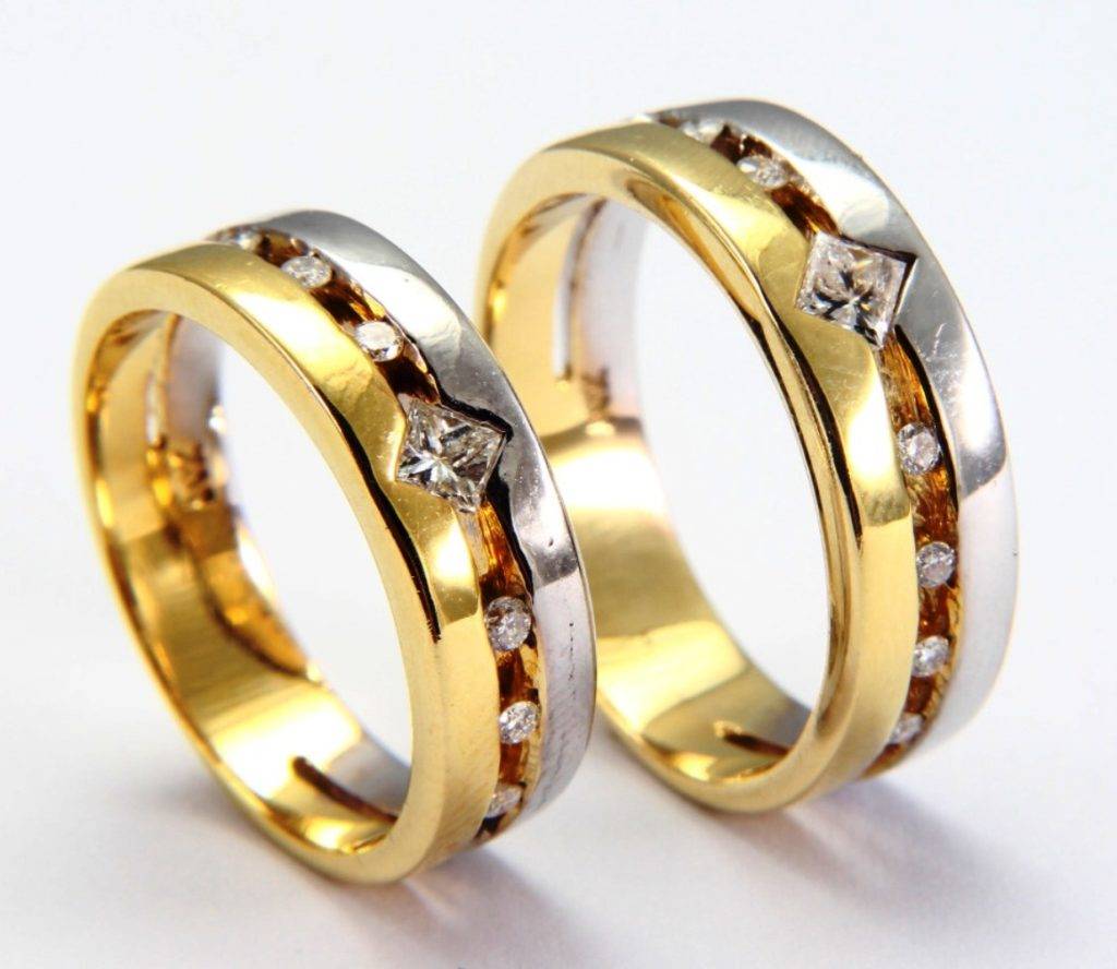 Сегодня очень в моде обручальные кольца из 2 видов золота, белого и желтого. Эти оба варианта сделаны из материала 585 пробы. Только в первый сплав добавляют больше серебра, а во второй – меди.