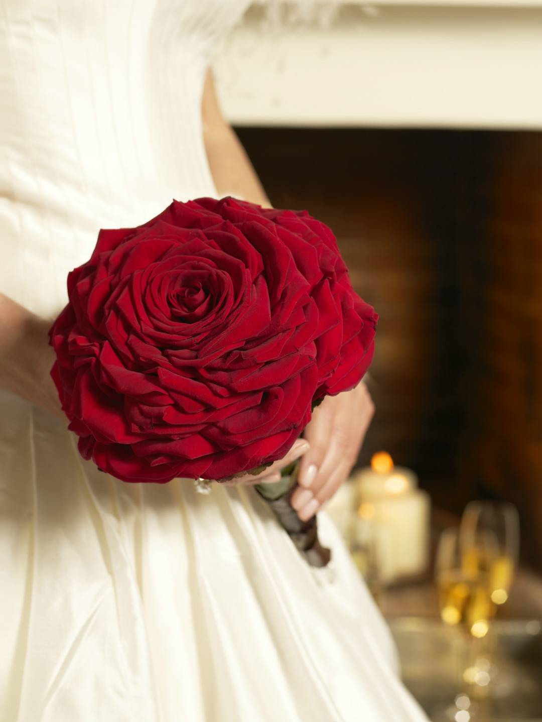 Свадебный букет в красных тонах — достаточно спорное решение; страсть — не всегда надёжный фундамент для семейных отношений
