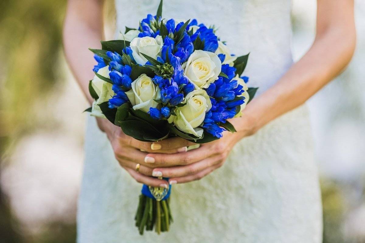 Этот цвет символизирует мудрость, верность и взаимное уважение. Особенно эффектно выглядит синий букет, если общий стиль торжества – морской.