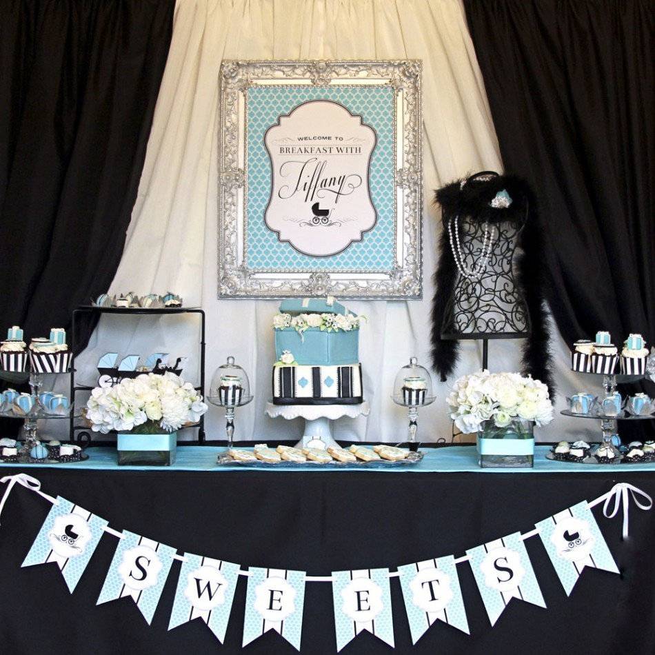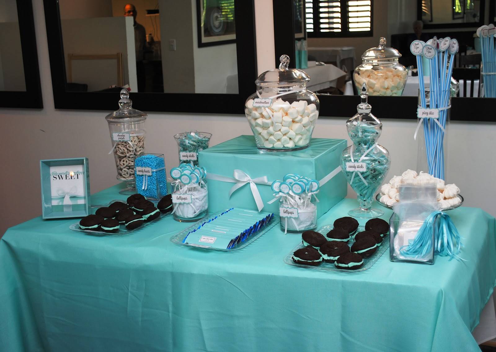 Выбор текстиля, цветочных композиций, салфеток, посуды, топперов и самих сладостей должен соответствовать цветовой палитре и тематике праздника. Например, оформляя зал на торжество в стиле «Завтрак у Тиффани» придерживаются ретро-направленности 50-60-х годов и бирюзового цвета с 2-3 полутонами, дополняя классическим черно-белым сочетанием