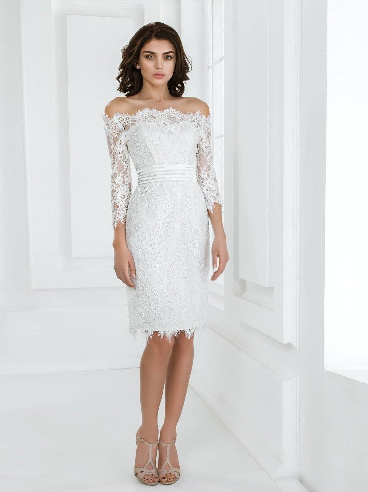 Модели без шлейфа дарят невесте комфорт и свободу движений. Рукава выбирают различного вида.
