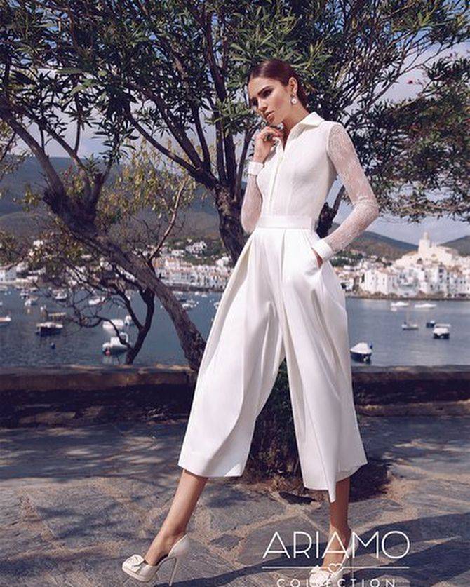 Укороченные брюки и кюлоты открывают лодыжку, а значит, роскошные свадебные туфли или босоножки будут открыты для восхищенных взглядов.
