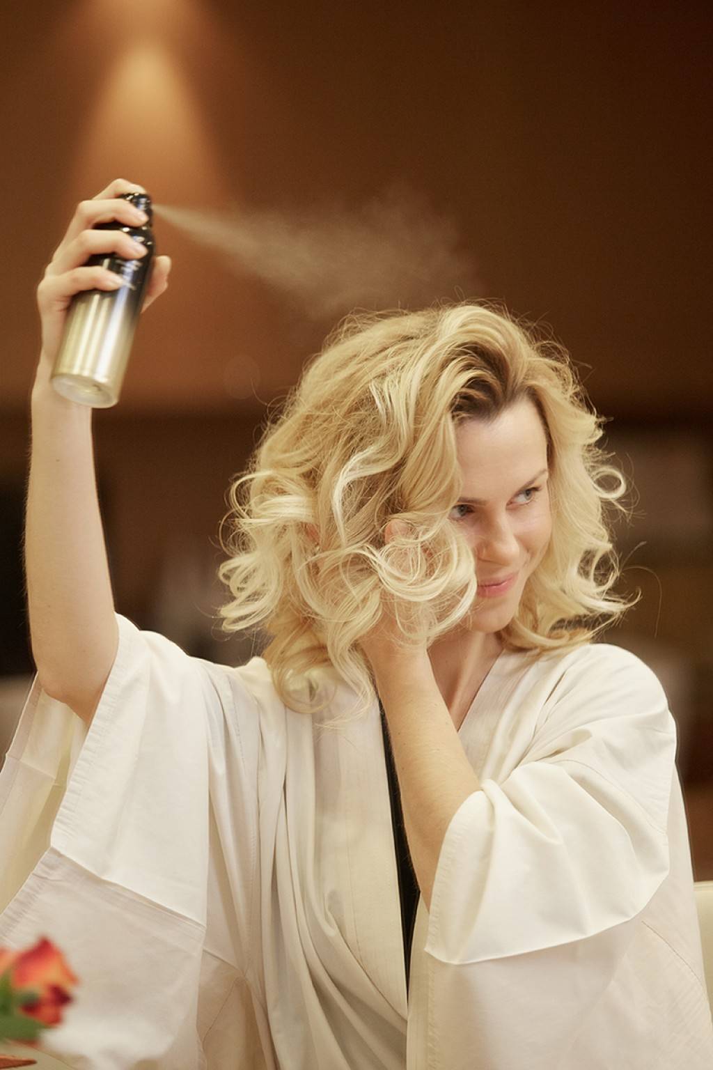После того, как все локоны будут проработаны, возьмите спрей-лак средней фиксации и обработайте всю укладку!