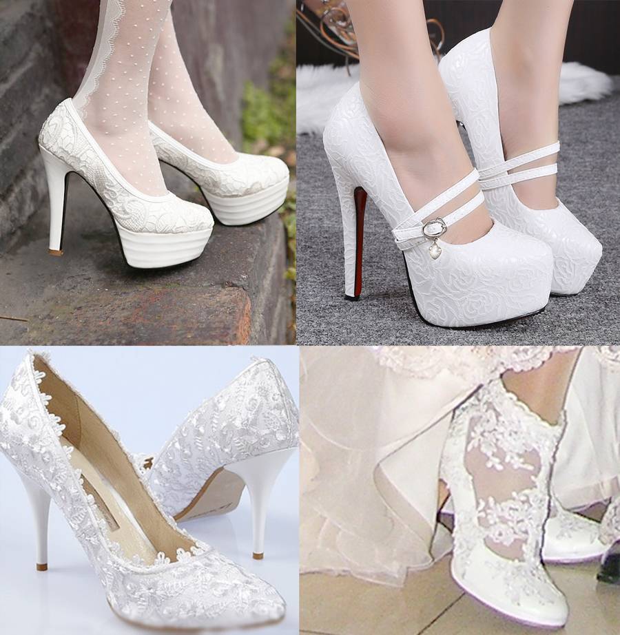 Принято считать, что туфли у невесты должны иметь закрытый носок и пятку и они непременно должны быть абсолютно новыми, никаких шнурков и застёжек.