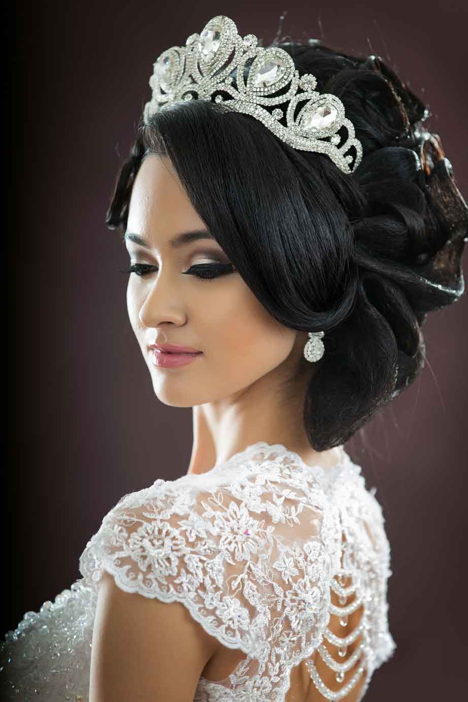 В дуэте с собранными волосами диадема с фатой способны создать поистине волшебный образ. Помните, что диадема – довольно капризное украшение, не терпящее небрежности или других ярких элементов оформления, к примеру, цветов.