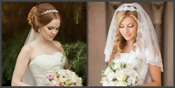 В дуэте с собранными волосами диадема с фатой способны создать поистине волшебный образ. Помните, что диадема – довольно капризное украшение, не терпящее небрежности или других ярких элементов оформления, к примеру, цветов.