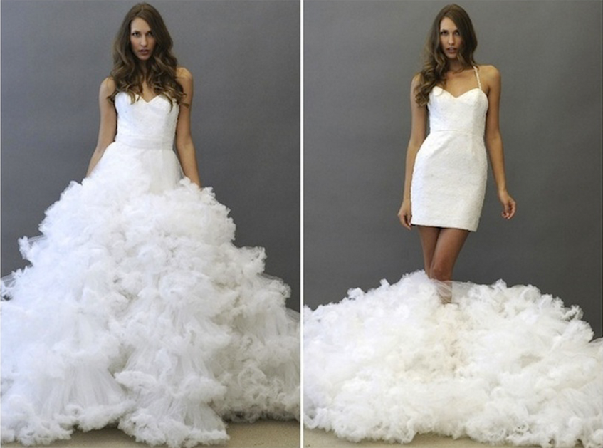 Кстати, а как же быть любительницам комфорта, желающим в день свадьбы блеснуть шикарным бальным платьем? Прекрасной альтернативой для вас станет ретро-наряд в модели трансформер. Не бойтесь, восстанием машин тут и не пахнет! Все куда более миролюбивее.