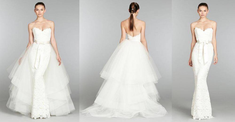 А вот фильм «Бриллиантовая рука» можно вспомнить. Наверное, все помнят фразу «…брюки превращаются…». Там, конечно, из-за технической заминки брюки шортами так и не стали. Но в наши дни с легкостью и без заминки шикарное свадебное платье можно превратить в элегантное мини, а может, и в любой другой вариант, в котором легко и просто будет покорить танцпол, а также веселиться до самого утра! Если вам такая перспектива по душе, то лучше трансформирующегося платья вы вряд ли что-то найдете.