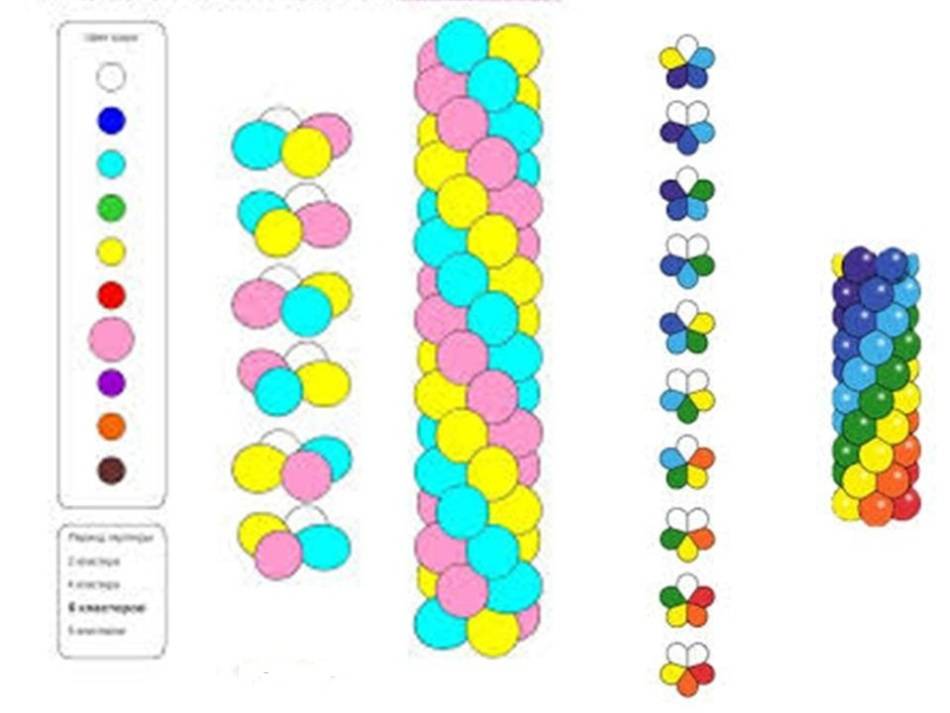 - Берут два одинаковых по цвету шара и соединяют между собой, формируя по такому принципу многочисленные одноцветные пары.