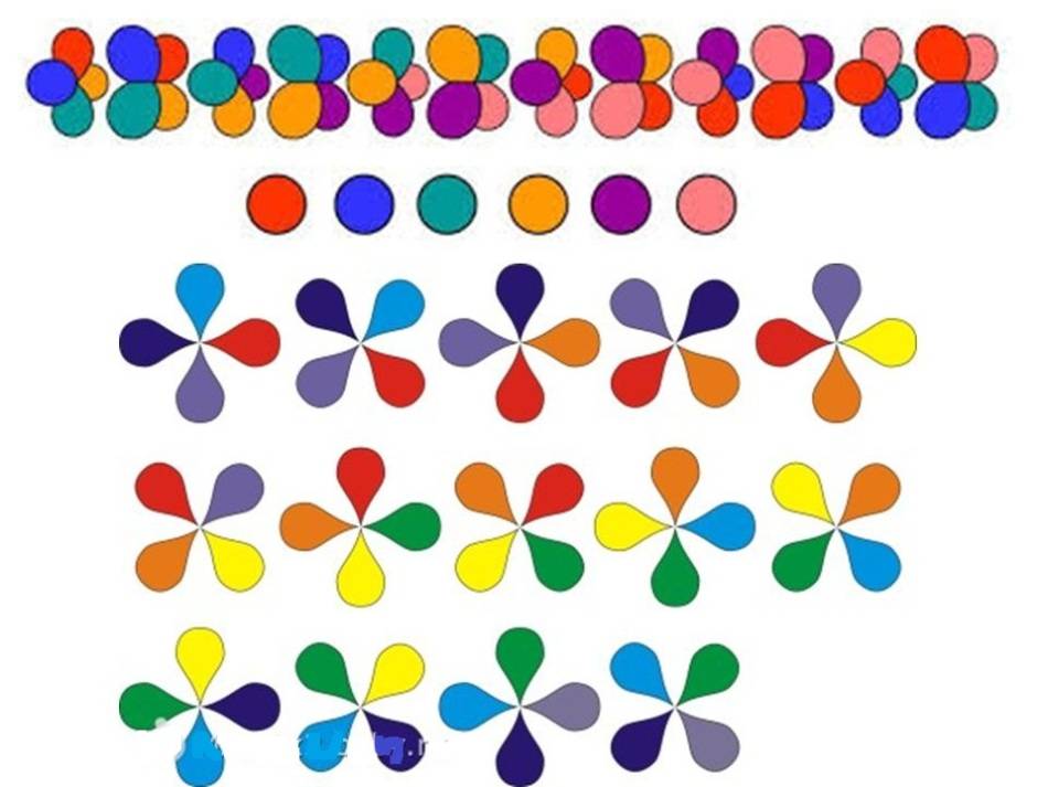 - Теперь берут две пары, отличающиеся по цвету, соединяют их между собой так, чтобы получить форму четырехлистного клевера.