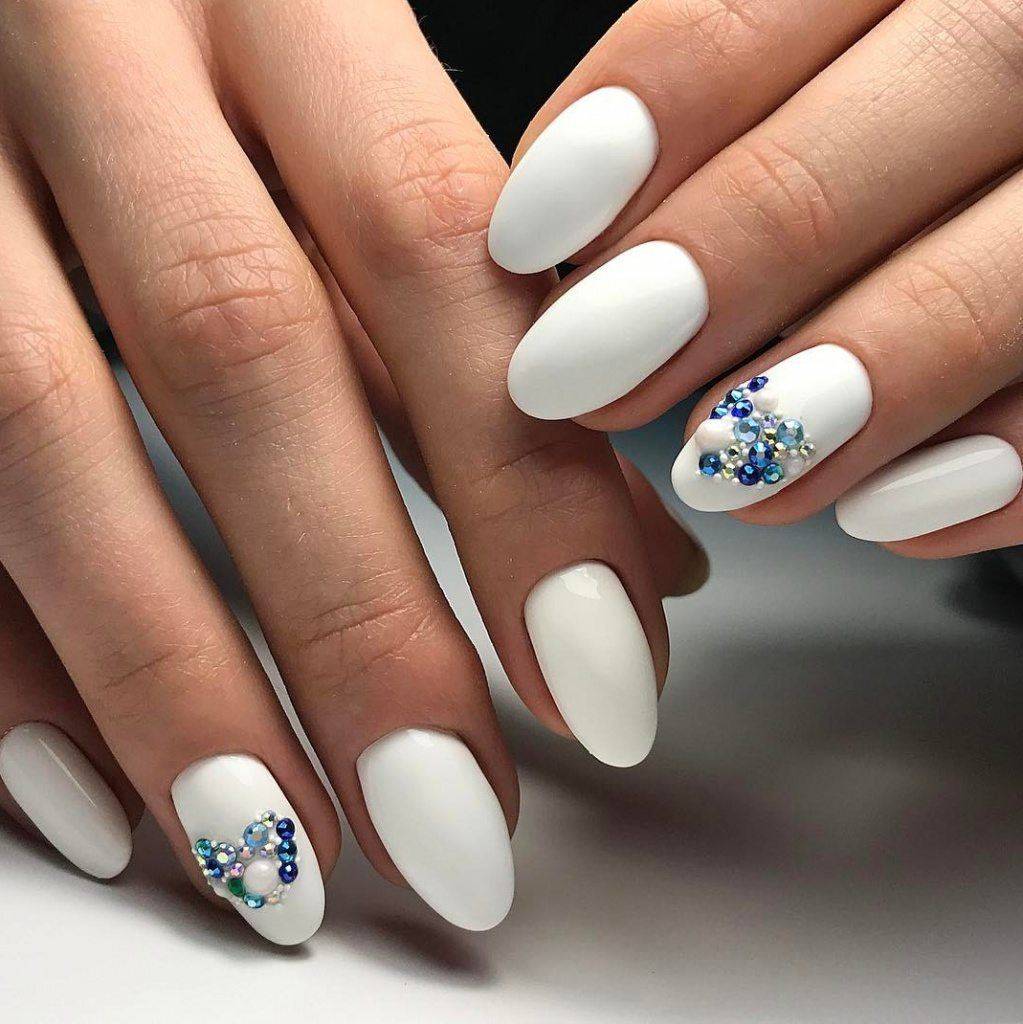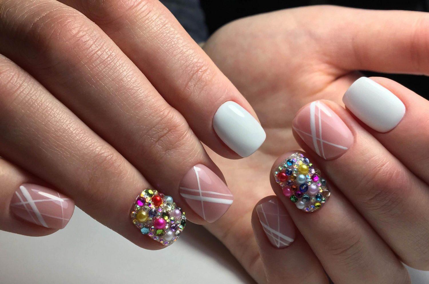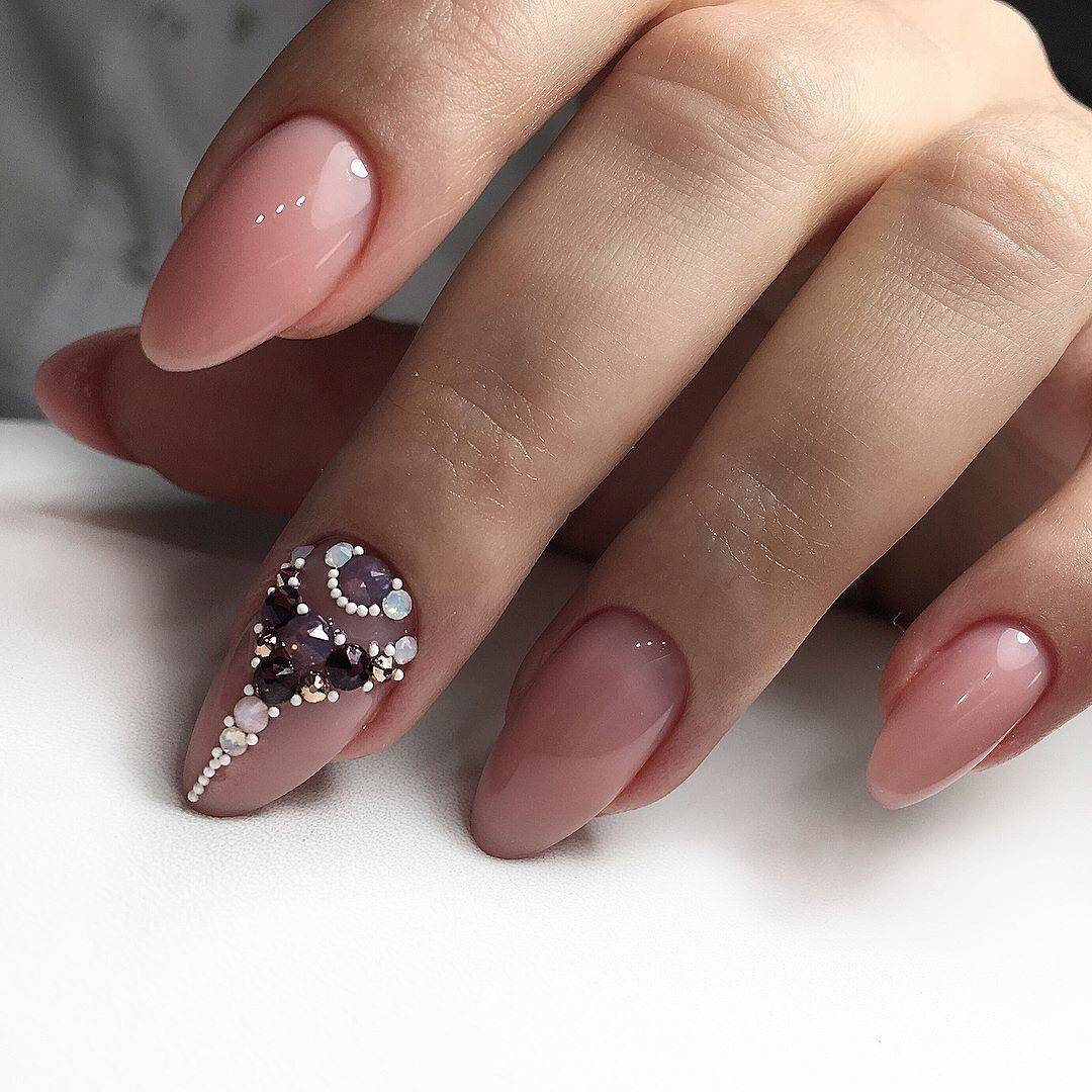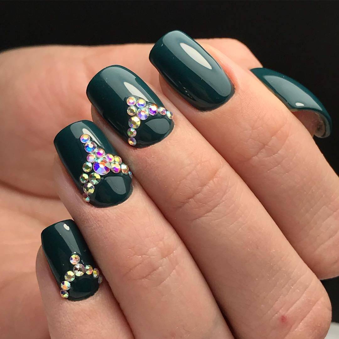 Украшение маникюра стразами не теряет своей актуальности. Многие мастера ногтевого сервиса отдают предпочтение в пользу таких дизайнов.