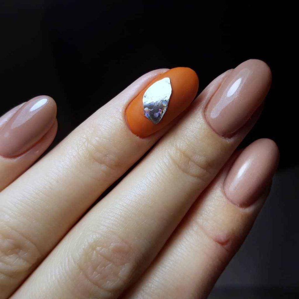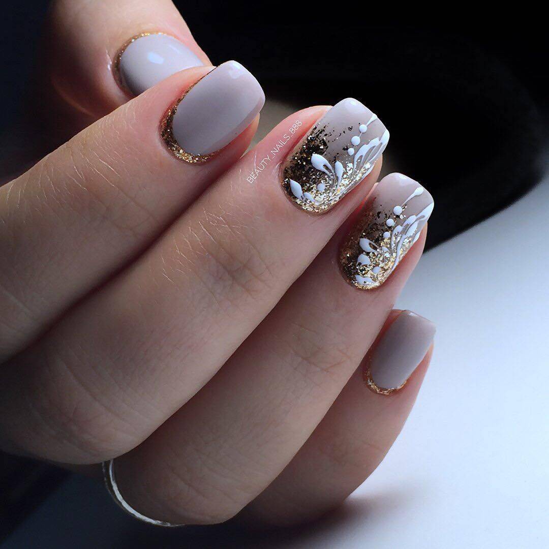 Довольно необычно выглядит золотой оттенок на ногтях в качестве декора. Но в сочетании с золотым кольцом на пальце этот дизайн будет смотреться фантастически красиво.