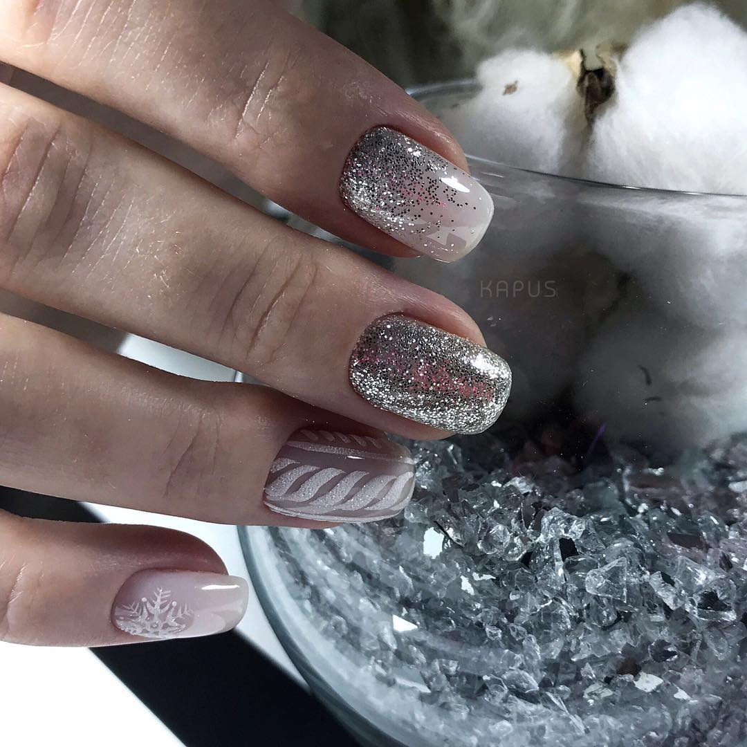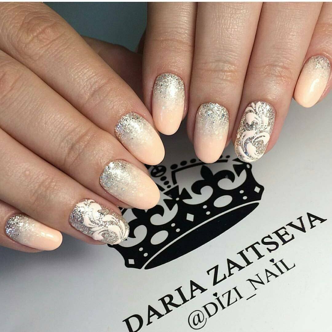 Специальный маникюр для вашего свадебного дня. Эти свадебные ногти для невест, очень просты в создании. Просто сделайте чистый розовый базовый цвет, омбре с добавлением серебряного блеска и финальное омбре с большим количеством блесток.