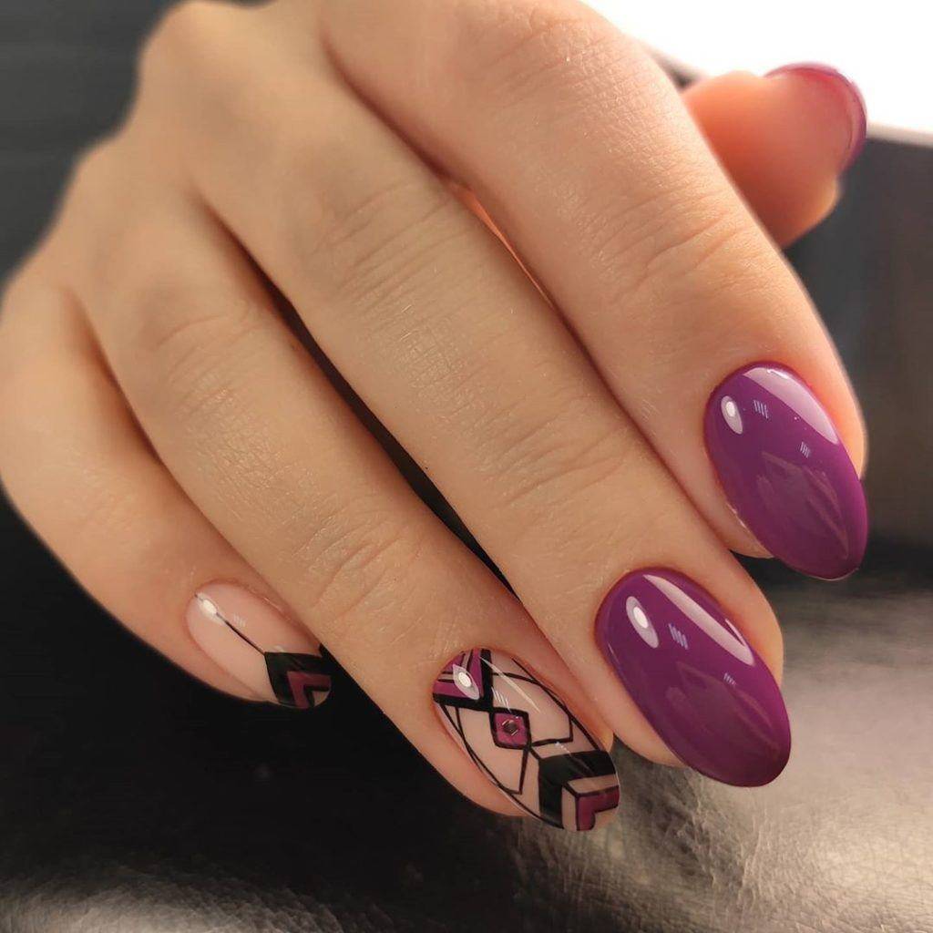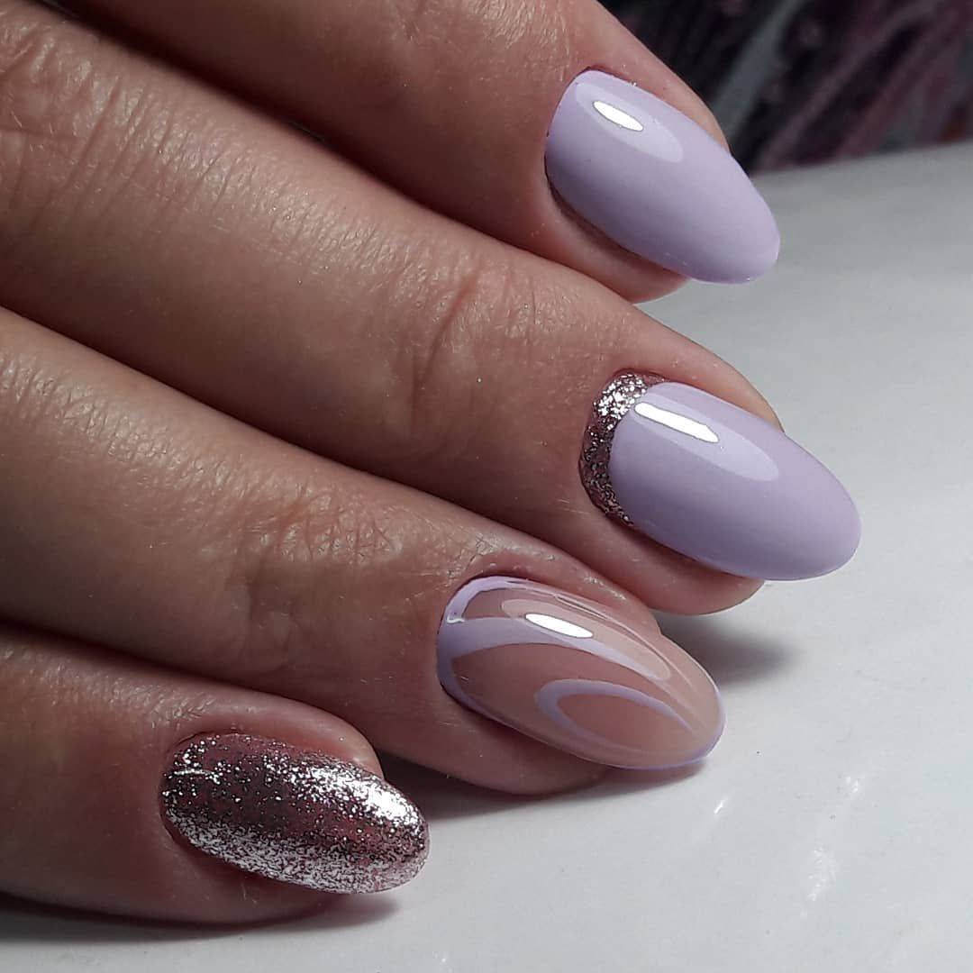 На овальных ногтях шикарно будут смотреться однотонные покрытия гель-лаком, втирка и симметричные аккуратные узоры.