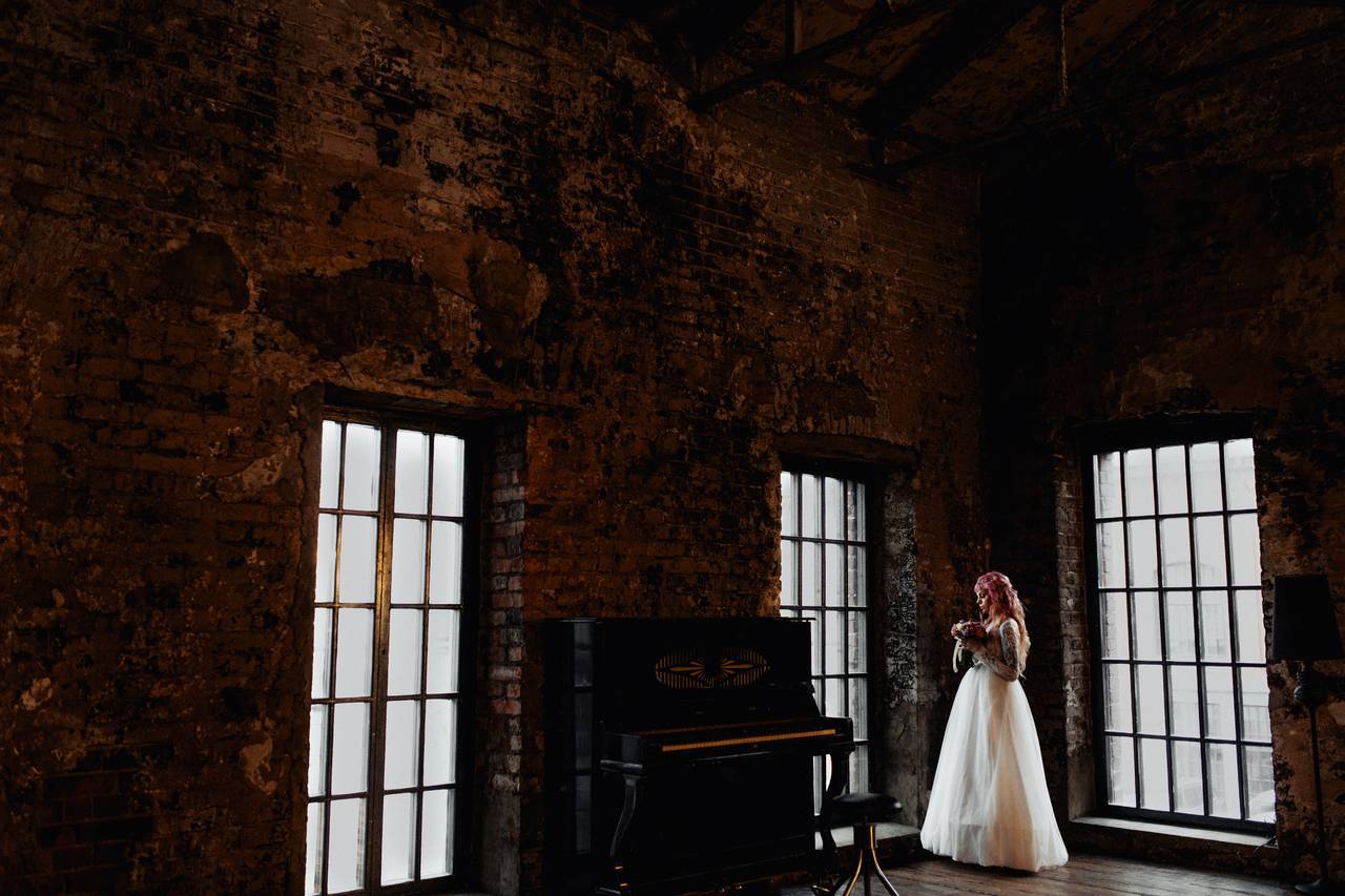 Утро свадебного дня, о котором я расскажу, мы снимали в студии Loft 1905 зале Grey Loft. Зал очень большой, выдержан в едином стиле, и это мне нравится, потому что часто студии-новички пытаются в одном интерьере сделать несколько зон для съемки — одна стена в одном стиле, другая в другом. А здесь цельный интерьер — куда не повернись, единое пространство. Плюс есть выход на собственную террасу, где можно продолжить съемку.