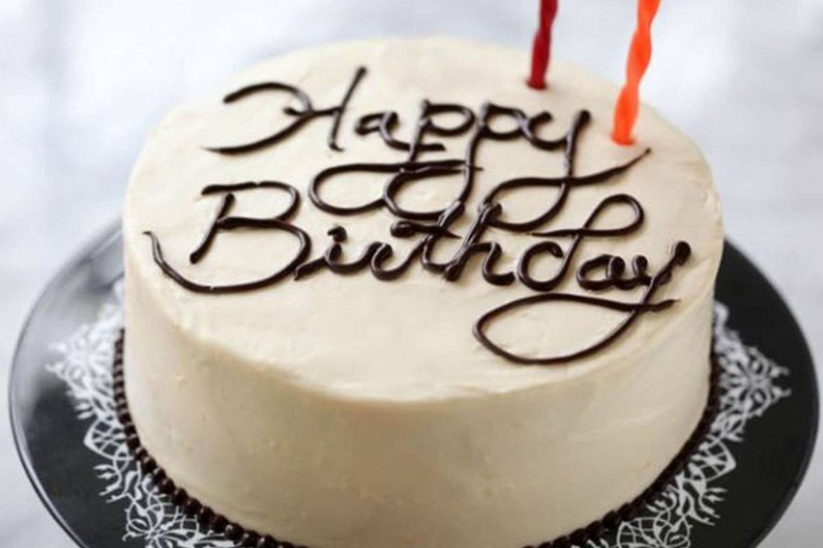 Масло растопить, смешать с какао-порошком, сделать надпись и отправить торт в холодильник для застывания.