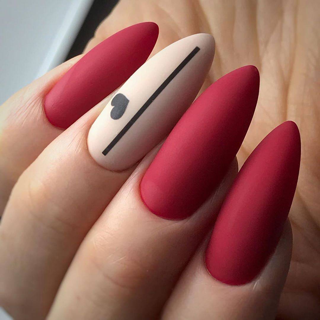 Мило и романтично смотрятся рисунки сердечек в сочетании с красным дизайном. Как правило красные или черные сердечки наносят на белый или нюдовый фон, на один или несколько ноготков. Кроме того, очень красиво смотрится этот дизайн покрытый матовым топом.