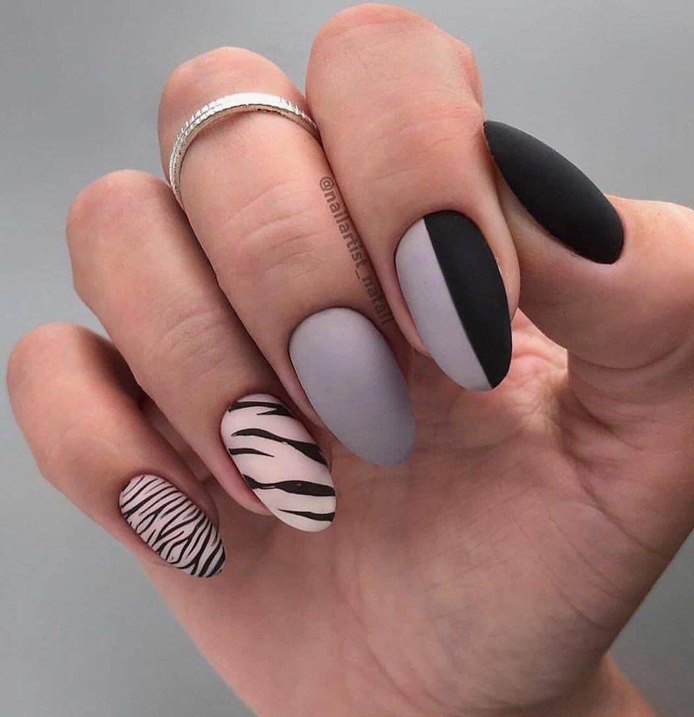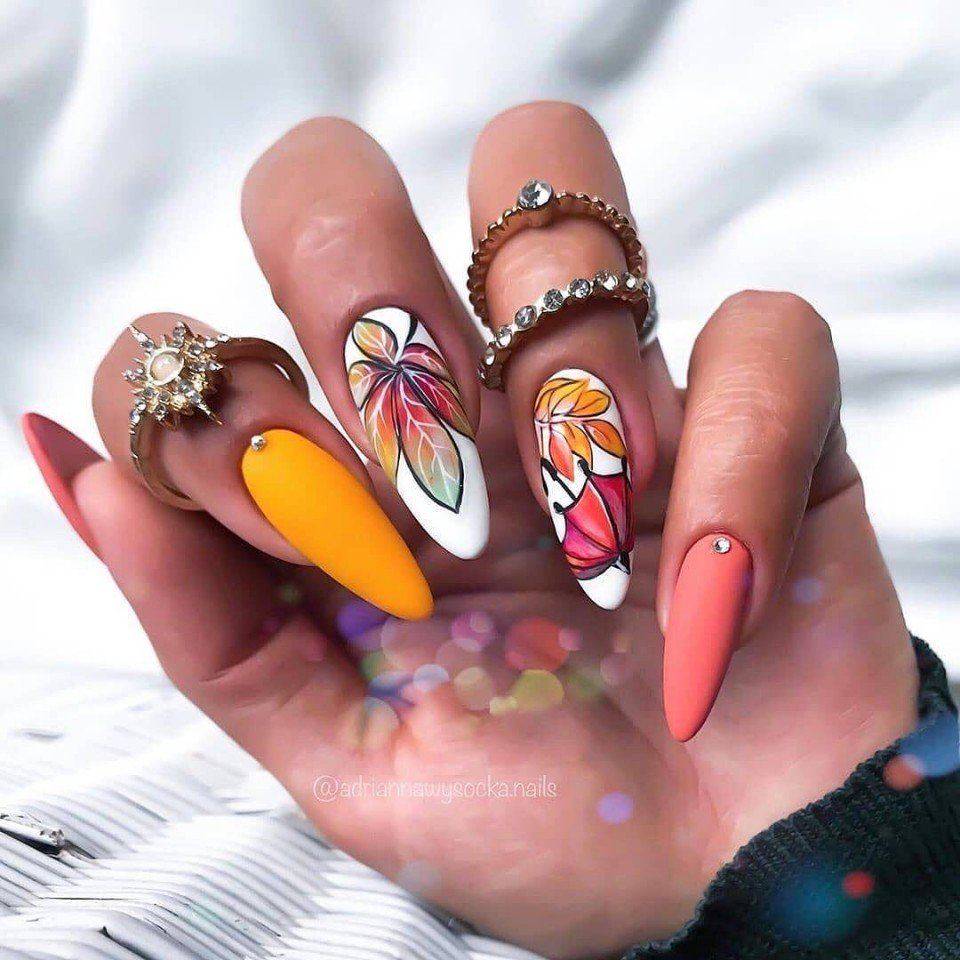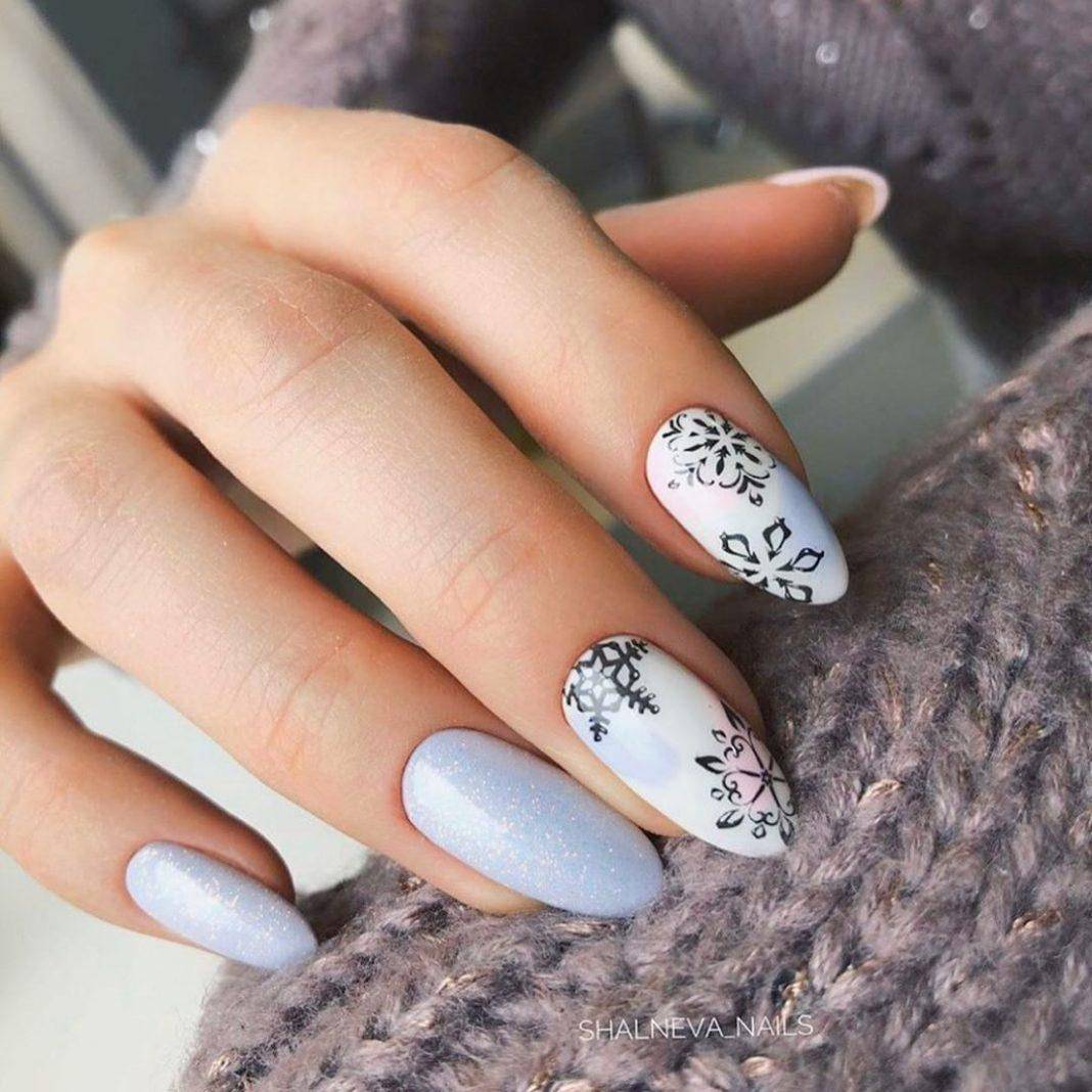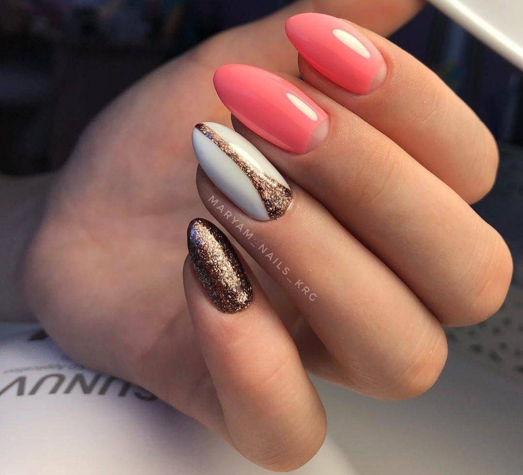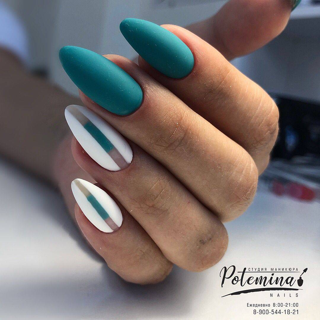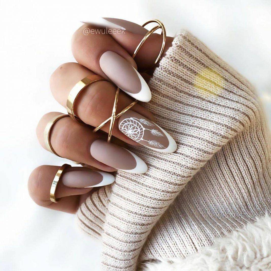 Модная находка — оформление всех ногтей по очереди более темными оттенками лака, использование молочного белого для указательного пальца и мизинца, совмещение разного дизайна, нескольких видов нейл-арта.