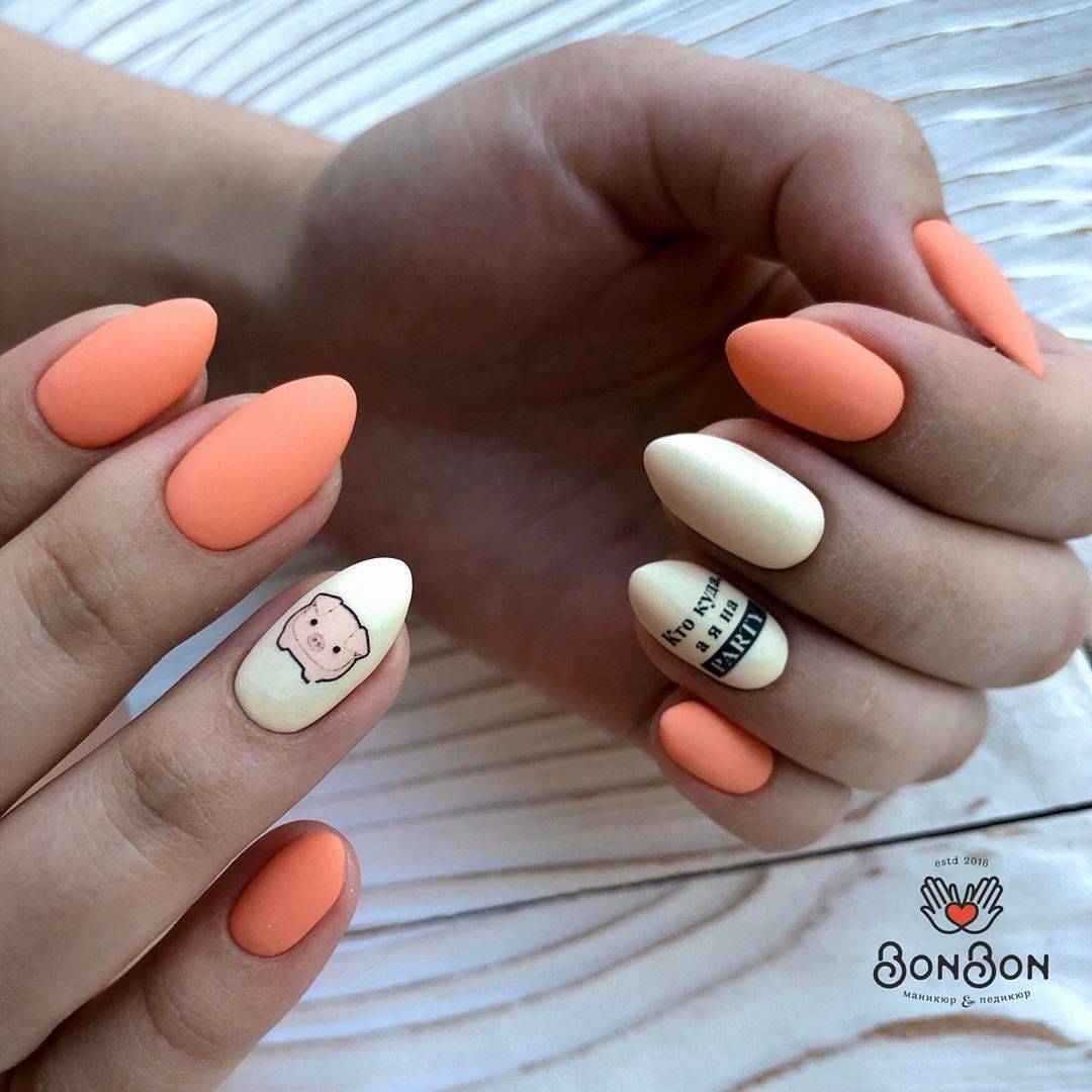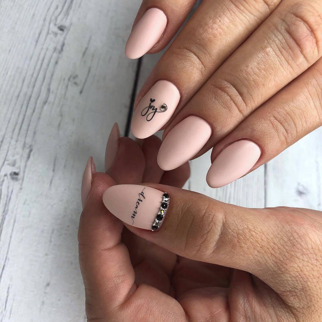 Надписи на ногтях смотрятся достаточно сложно, поэтому остальные ноготки должны быть выполнены в стиле минимализм с однотонным окрашиванием ногтей