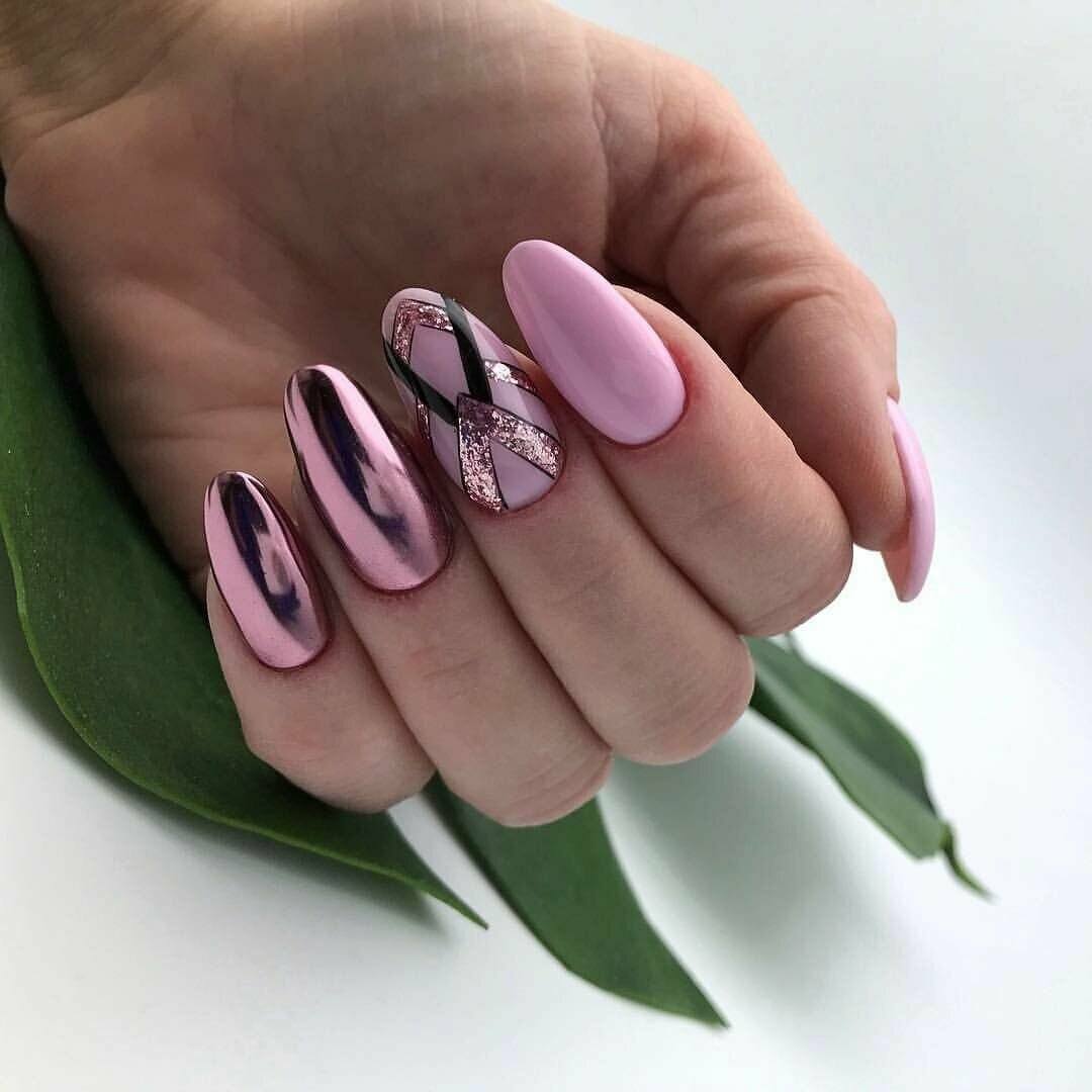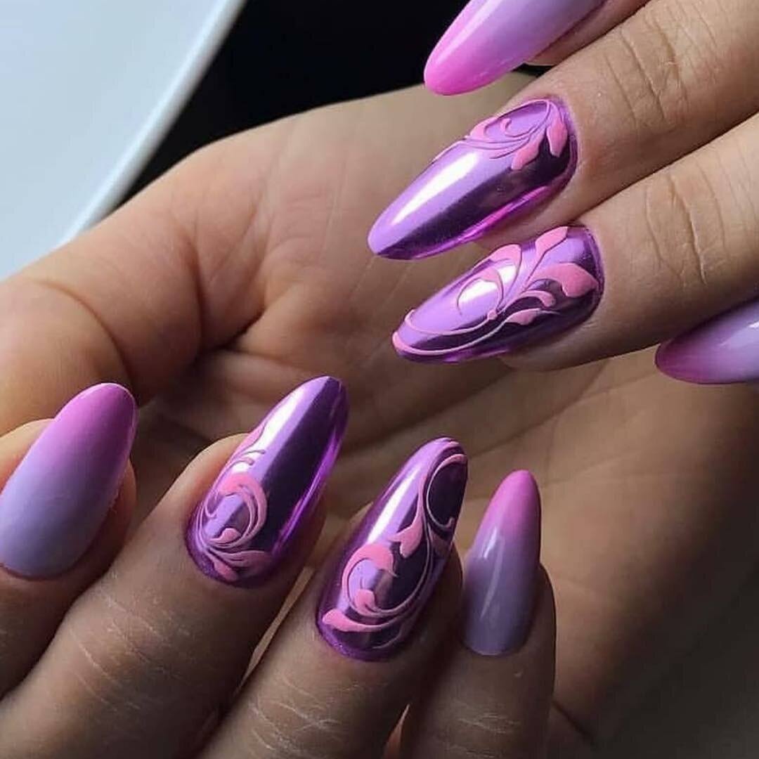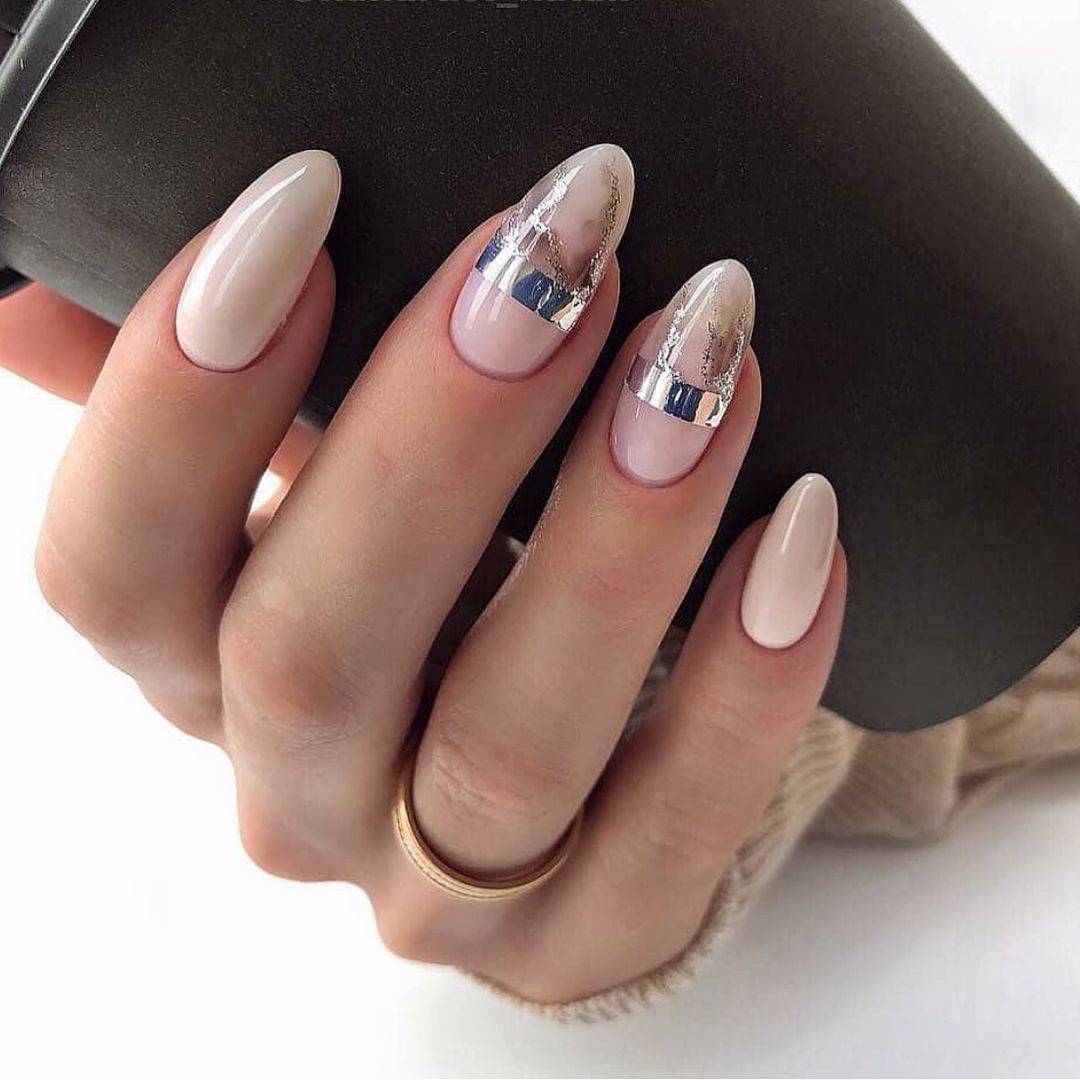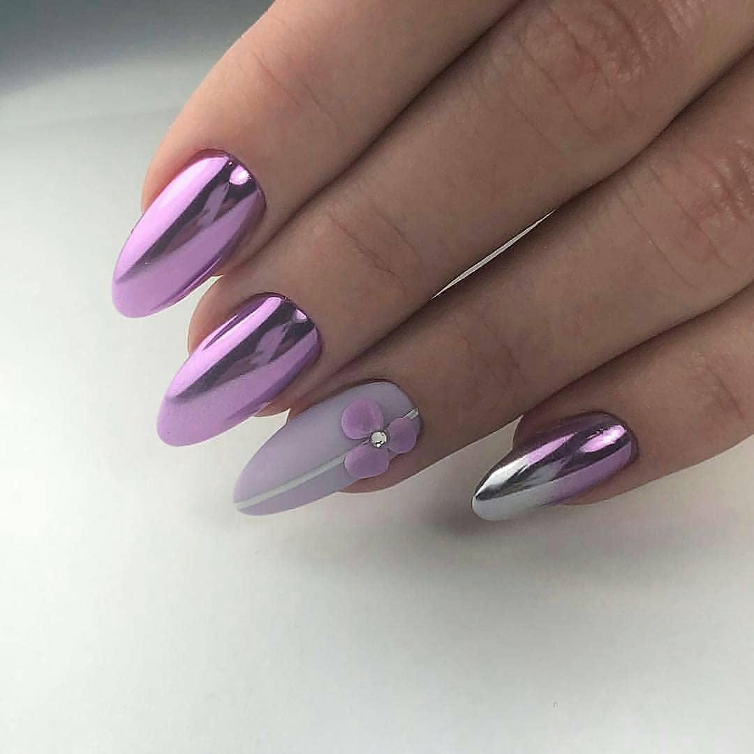 Металлик – шикарный дизайн ногтей, создающий эффект покрытия пленкой из драгоценных металлов. Этот трендовый в текущем сезоне дизайн, который иногда называют зеркальным, отлично подойдет и для свадебного торжества.