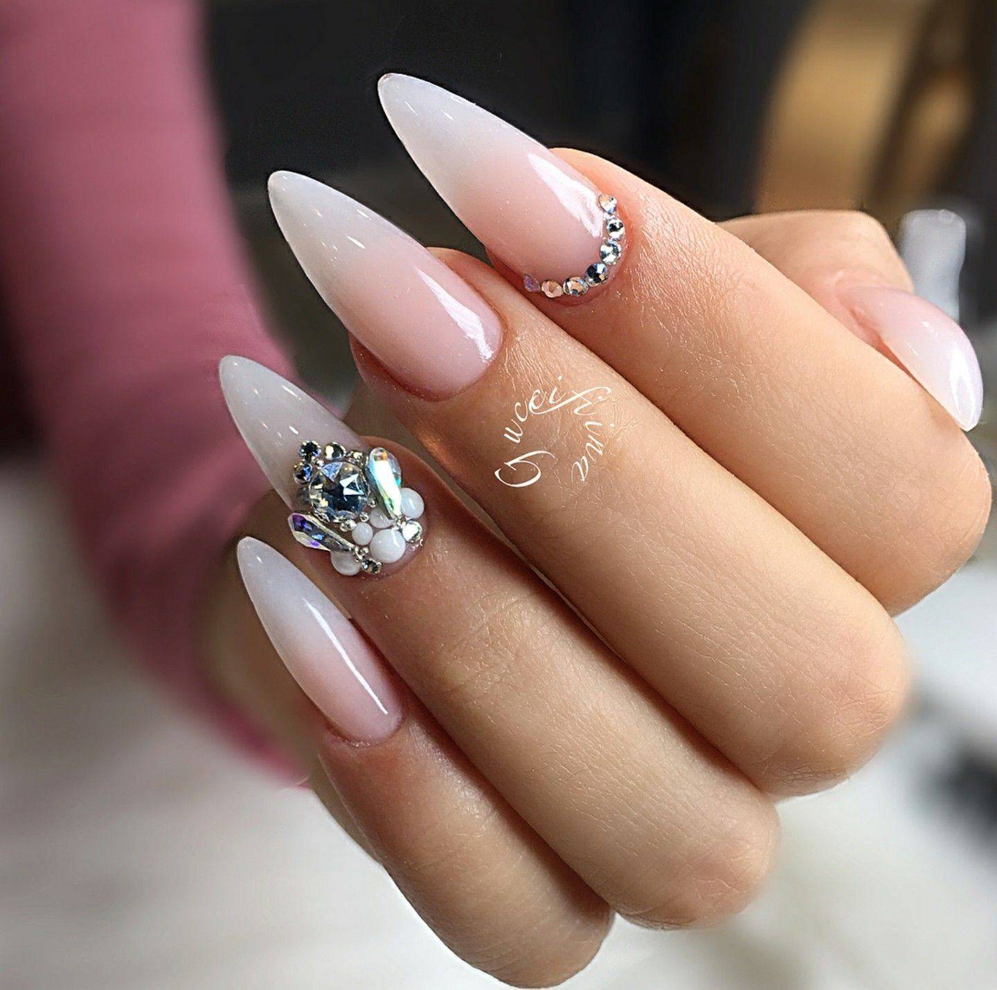 Нежные идеи дизайнов коротких ногтей с нюдовым маникюром со стразами и блесками