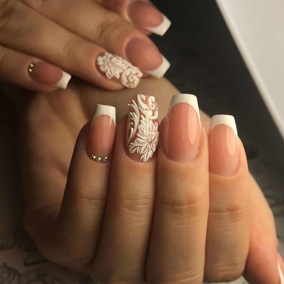 Аристократичная сдержанность, романтичный рисунок или же симметричная геометрия — любой из этих вариантов гармонично украсит длинные ногти невесты.