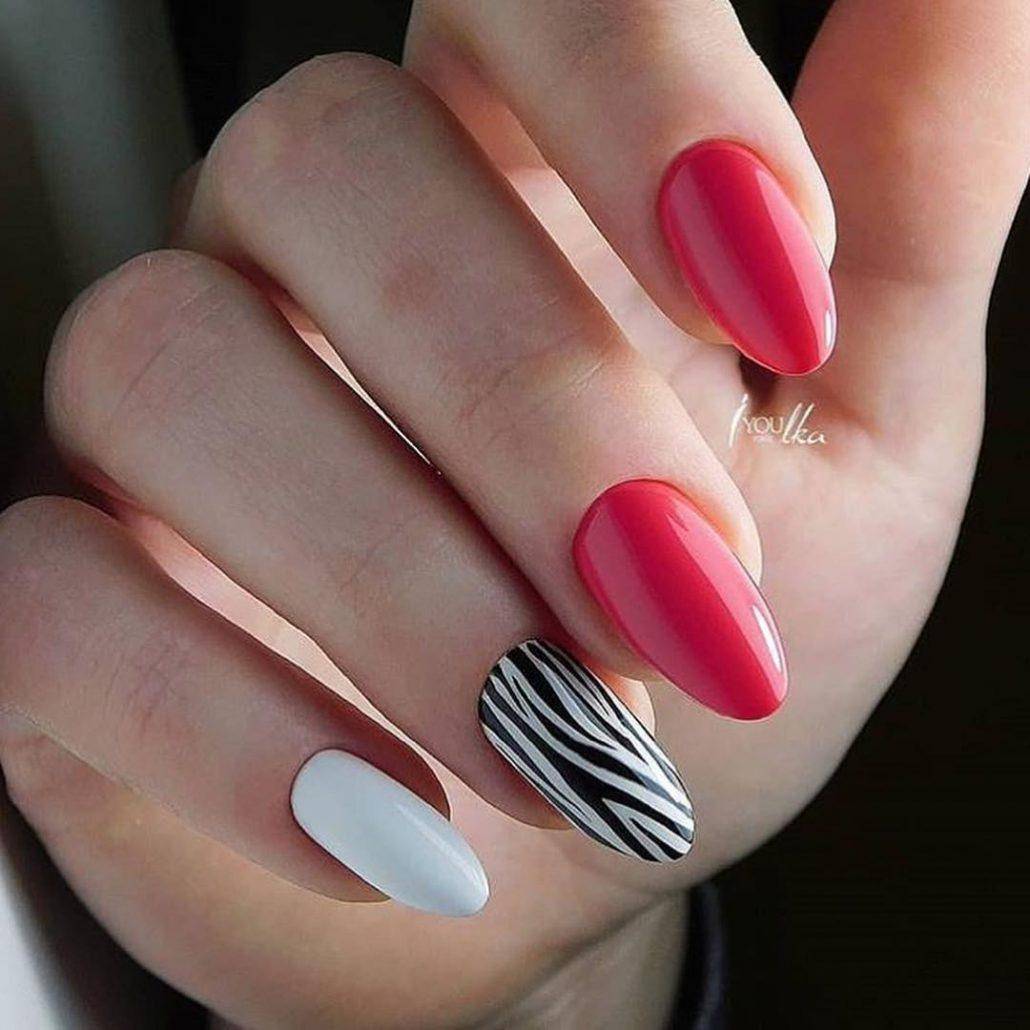 Вторым по-популярности, в этом сезоне является красный маникюр с различными рисунками. Это самое востребованное и желанное сочетание — вне моды и времени. Как мы знаем, красные ноготки любит большая часть прекрасной половины человечества, и рисунки на ноготках предпочитает не меньшее их количество.